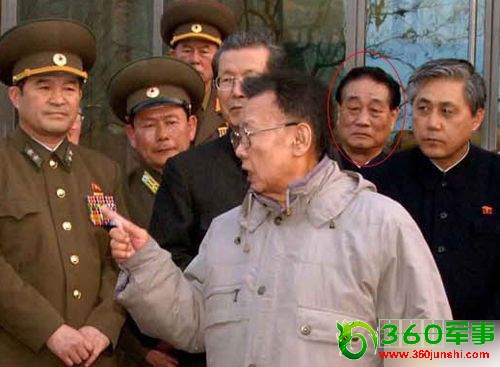 图为2009年3月,金正日视察金日成大学时,朴南基(红圈中)陪同。