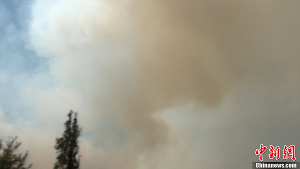 图为大量浓烟飘进县区。