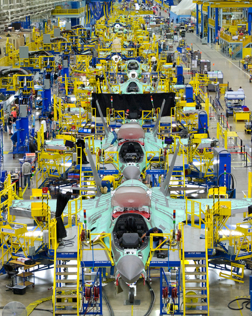 美国军工巨头洛克西德-马丁公司官方网站近日评出2013年度首批精美战机图片。其评选出来的照片都是由洛-马公司生产的战机,如F-35、F-16、F-22、C-130系列运输机。图为位于沃思堡的洛克西德-马丁公司F-35战机总装线。