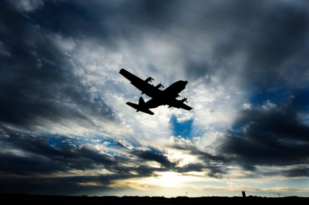 A AC-130在阿肯色州小石城空军基地起飞