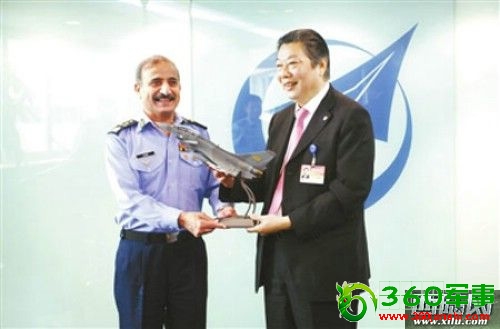 中航工业董事长林左鸣塔希尔向塔希尔上将赠送模型