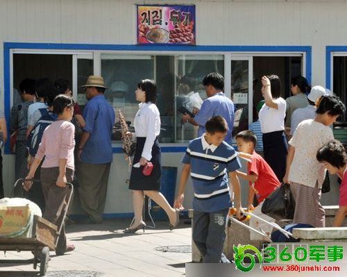 朝鲜平壤,民众在粮油站外排队