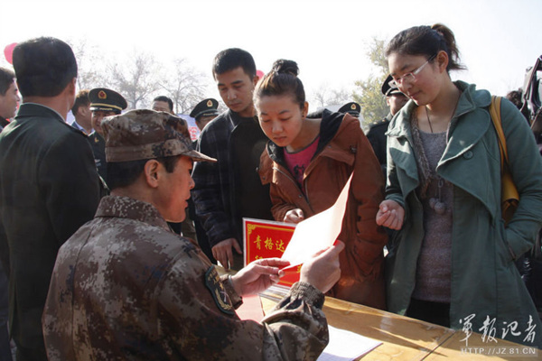 解放军募兵 新疆漂亮妹子踊跃参军(1)